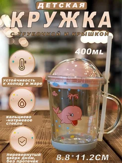 Кружка детская с трубочкой и крышкой 400 мл