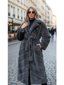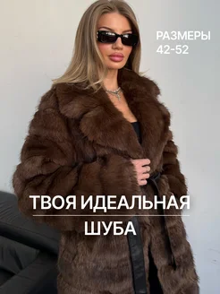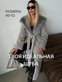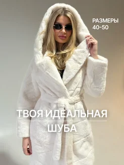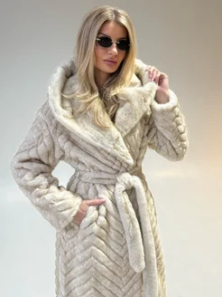 Эко Шуба искусственная с капюшоном зимняя 120см под норку