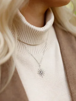 Колье цепочка на шею серебристая солнце
