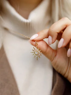 Колье цепочка на шею золотистая солнце