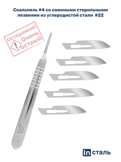Скальпель медицинский хирургический №4 + лезвия №22 (5 шт.)