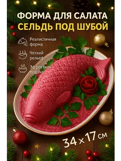 Форма для салата Сельдь под шубой 34×17 см новогодняя
