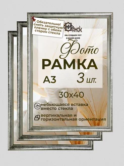Фоторамка на стену серебро набор 3 шт 21х30 А4