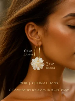 Серьги бижутерия белый цветок