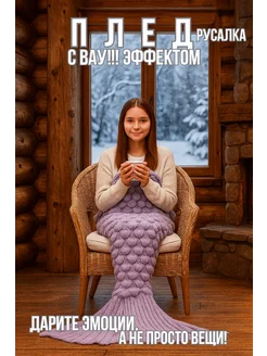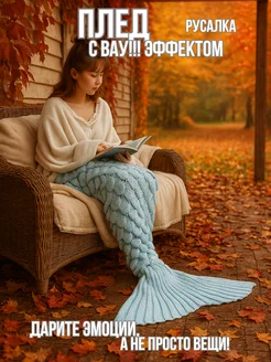 Плед теплый вязаный русалка 70х140 см