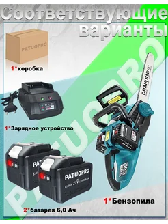 Бесщеточная электрическая бензопила (2 АКБ 6,0 Ач)