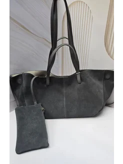 Сумка шоппер с косметичкой натуральная замша большая 37см