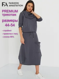 Платье женское трикотажное бохо макси Серое