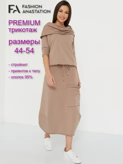 Платье из футера трикотажное бохо макси Коричневое