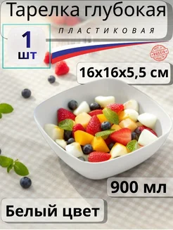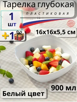 Тарелка пластик квадратная глубокая 900 мл белая 1 шт