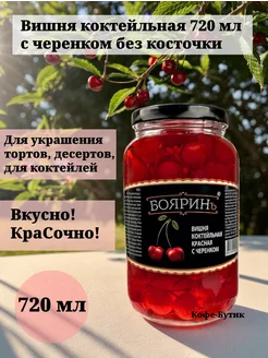 Коктейльная вишня с веточкой (черенком) красная 720 мл