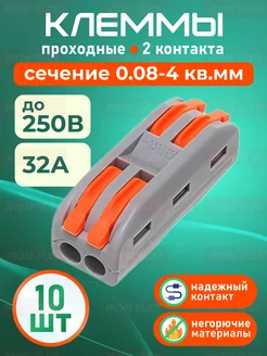 Клемма соединительная проходная ваго 2 х пров 10 шт