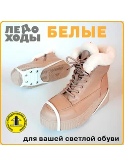 Белые ледоступы женские на светлую обувь 6х6 шипы - победит