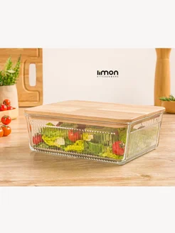 Стеклянный контейнер с деревянной крышкой, 2.25 л