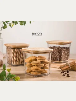 Стеклянный контейнер с деревянной крышкой 860 мл