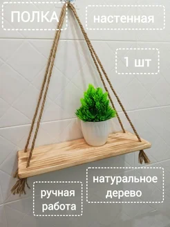 Настенная деревянная полка на канатах