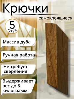 Крючки самоклеящиеся деревянные для ванной и кухни