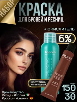 Краска для бровей и ресниц с кератином Коричневая + оксид 6%