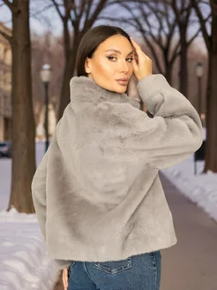 Шуба из искусственного меха серо-голубая короткая