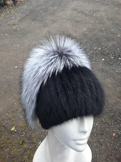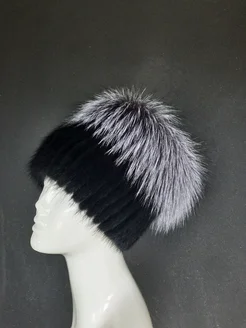 Шапка из натурального меха ондатры и чернобурки зимняя