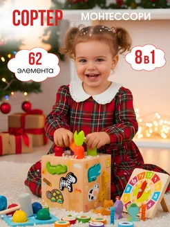 Сортер деревянный для малышей бизикубик мини бизиборд 8в1