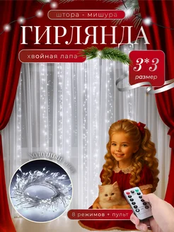 Гирлянда штора мишура хвойная лапа 3х3