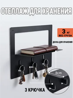 Полка настенная черная металлическая 30х18x8 см 1 шт