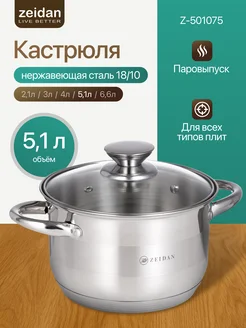 Кастрюля с крышкой из нержавеющей стали, 5 л