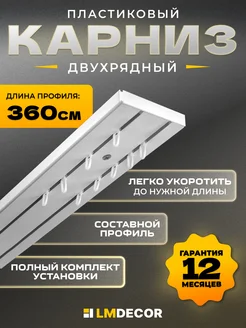 Карниз для штор потолочный двухрядный составной ПВХ 360 см