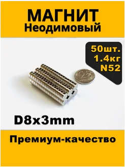 Неодимовый магнит диск 8х3 мм - 50 штук