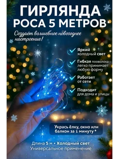 Гирлянда роса 5 метров на новогоднюю елку, уличная
