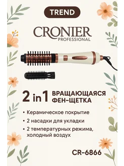 Фен-щетка CRONIER CR-6866 2 в 1 вращающаяся с насадками