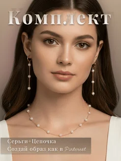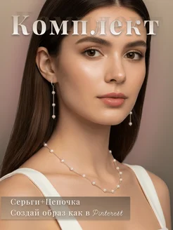 Комплект украшений цепочка и серьги с жемчугом бижутерия