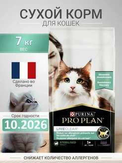 Сухой кор Live Clear 1+ для кошек м 7 кг индейка