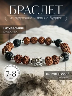 Браслет из рудракши с вулканическим камнем лава и Буддой