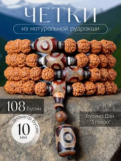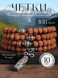 Четки 108 бусин браслет Рудракша с бусиной Дзи "9 глаз"