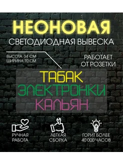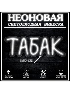 Неоновая вывеска ТАБАК 78х27см холодный белый