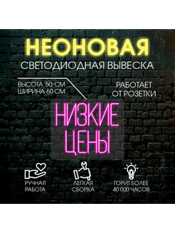 Неоновая вывеска "низкие цены" 60х50 см роз