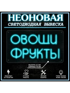 Неоновая вывеска ОВОЩИ ФРУКТЫ 75X43 см голубой