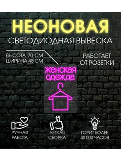 Неоновая вывеска "женская одежда" 70х48 см розовый