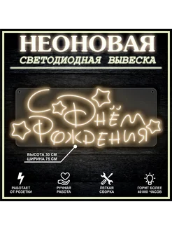 Неоновая вывеска С ДНЕМ РОЖДЕНИЯ 75х30 см теплый белый