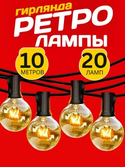 Ретро гирлянда уличная 10 метров 20 ламп