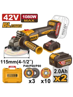 Угловая шлифовальная машина 42В 2*2 0Ач INGCO CAGLI4108112