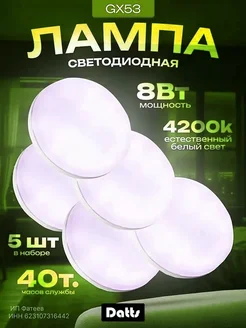Лампа LED GX53 8Вт 4200K белый свет 5 шт
