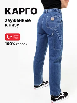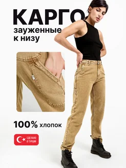 Джинсы карго зауженные с высокой посадкой мом бойфренд