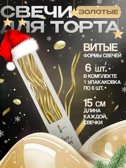 Свечи для торта длинные волнистые витые золотые 6 штук