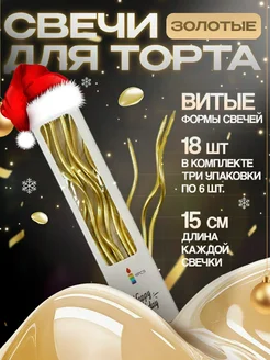 Свечи для торта длинные волнистые витые золотые 18 штук