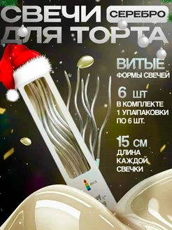 Свечи для торта длинные витые волнистые серебряные 6 штук