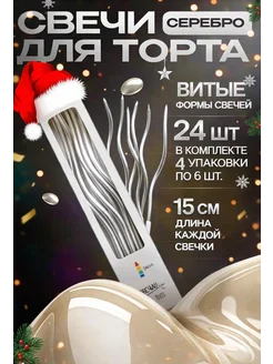 Свечи для торта длинные волнистые витые серебряные 24 штуки