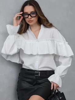 Рубашка блузка с воланами и рюшами школьная праздничная